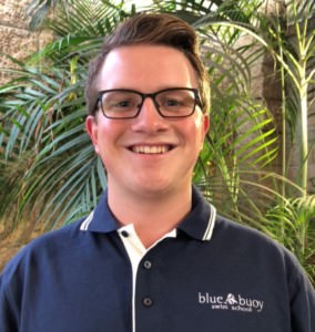 Scott P. became part of the Blue Buoy Family in 2019. Scott played Water Polo and was on swim team all four years at El Modena High School. He also swam for ORCA and competed at Junior Olympics. He enjoys helping children accomplish their goals and learning how to do new things. Scott has been working with special ability kids and medically fragile kids since 2014. In his spare time he enjoys being outdoors and doing activities like camping, bouldering, and swimming. A couple of fun facts about Scott, he has 6 siblings and his last name (Pina) means pineapple.